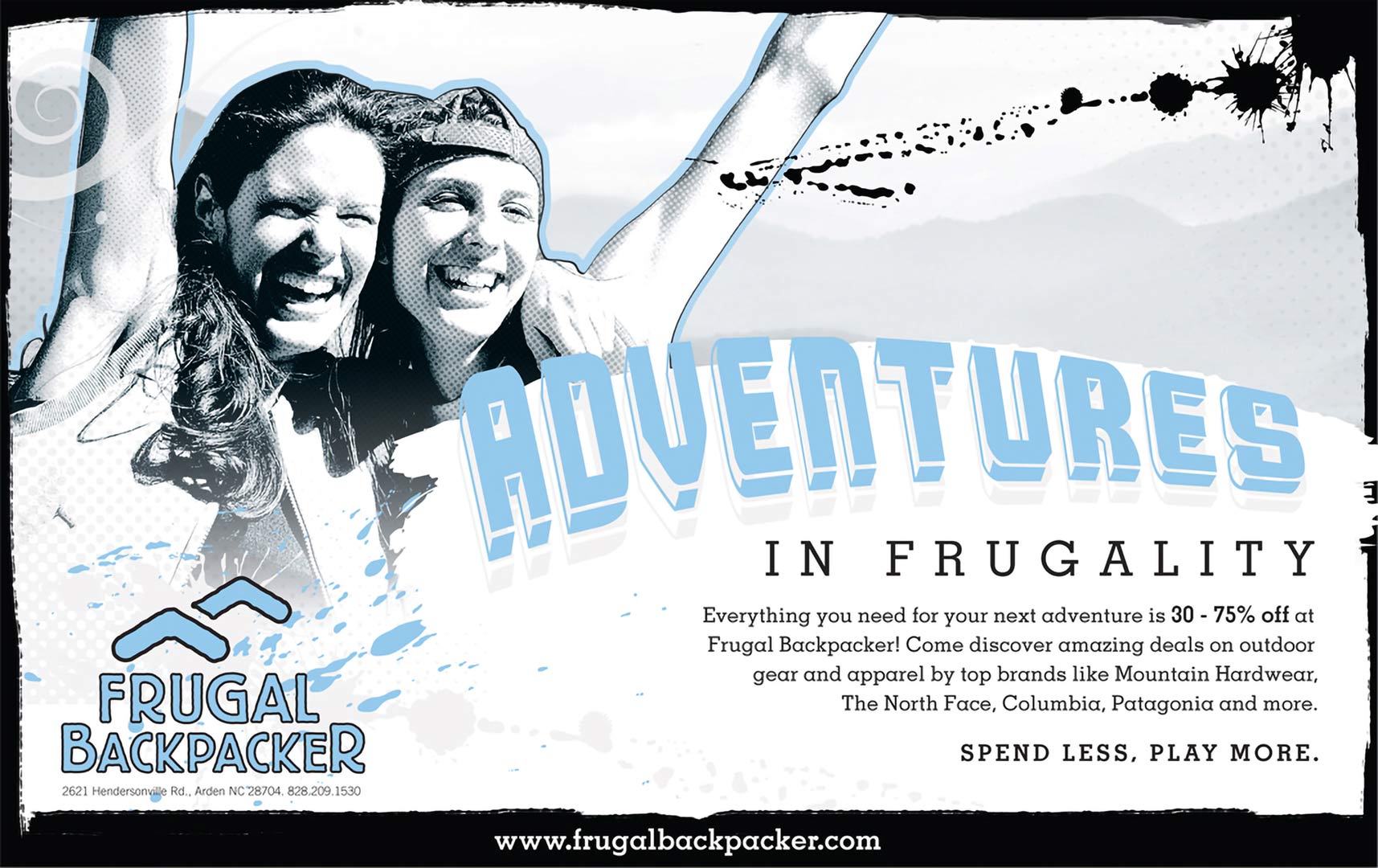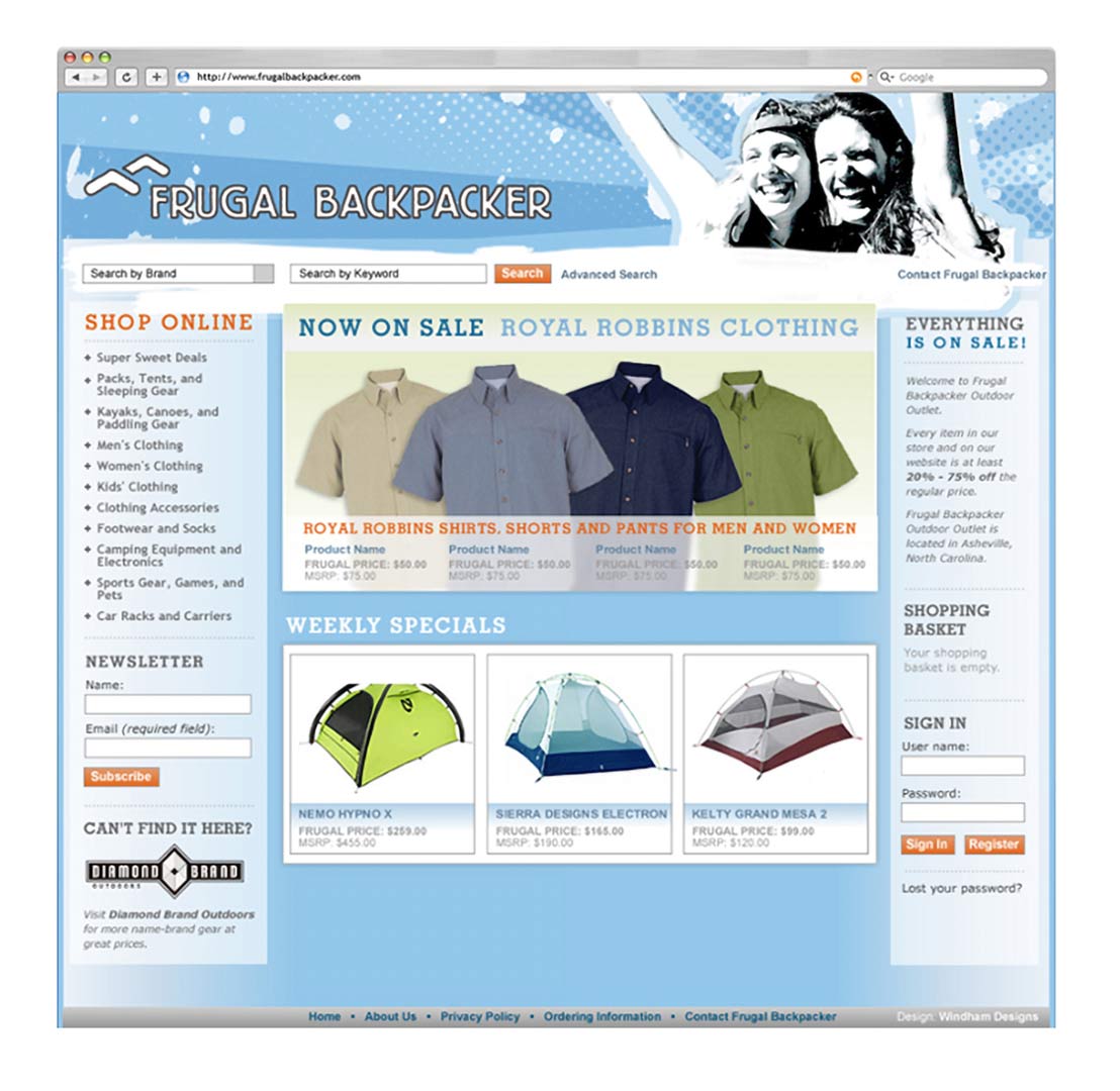 We ensured consistent application of the brand message and design across every touchpoint—from website and in-store signage to event promotions, merchandising, advertising, and public relations. Each initiative highlighted the wide array of sports, activities, and unique experiences Frugal Backpacker offers at a lower cost.