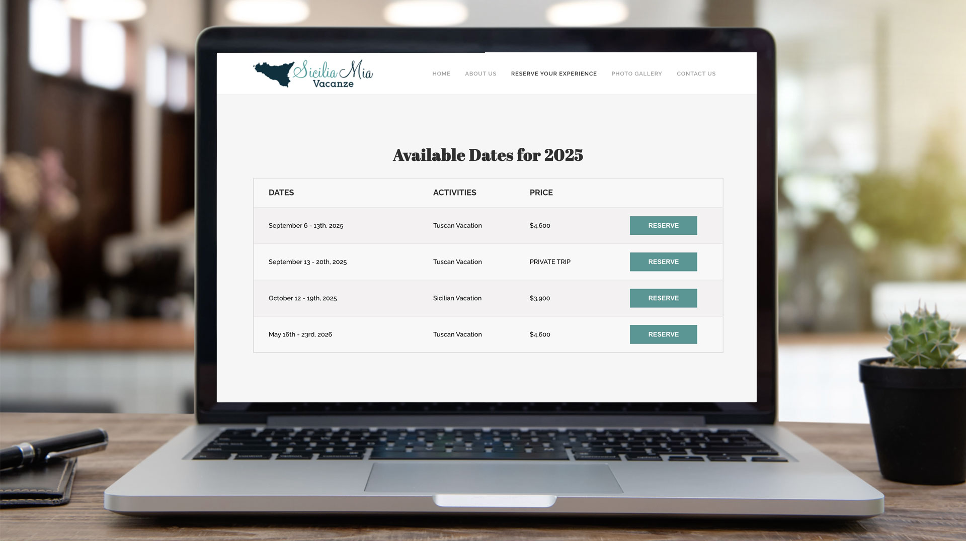 We designed a website that showcases the vibrant culture and stunning landscapes of Sicily while effectively highlighting Anita’s curated travel experiences. The site features a customized event calendar, detailed descriptions of the villa, activities, and excursions, and an integrated shopping cart that allows guests to personalize their Sicilian adventure.